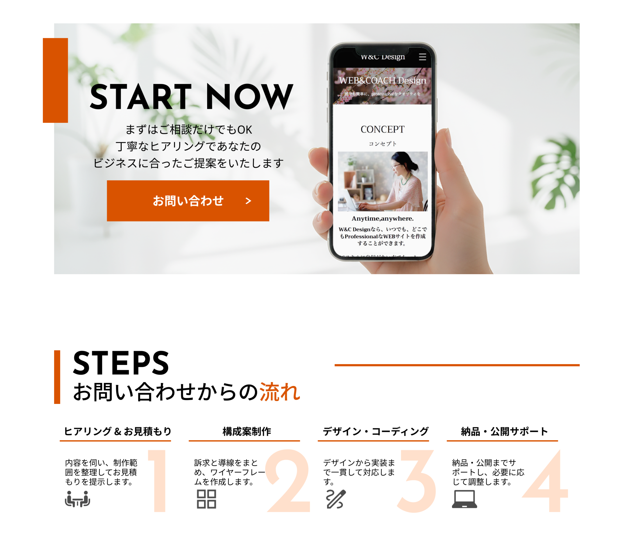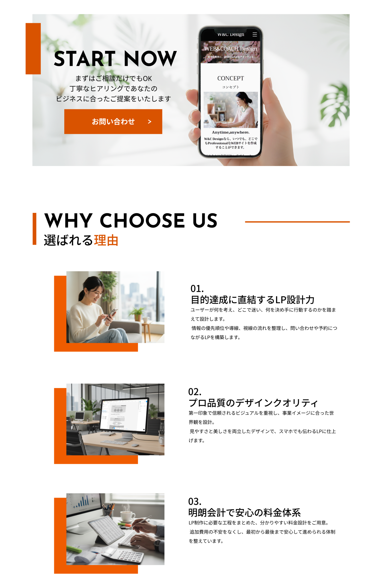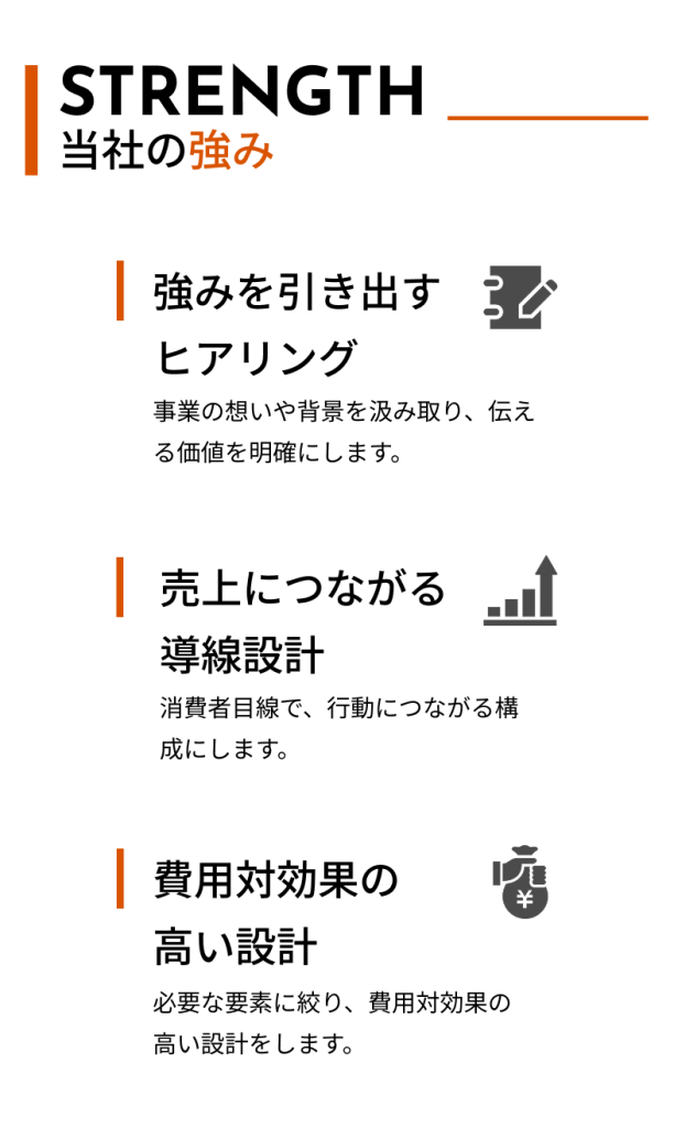 依頼したいと思える信頼感や誠実感を表現するシンプルさと親しみやすさを与える配色